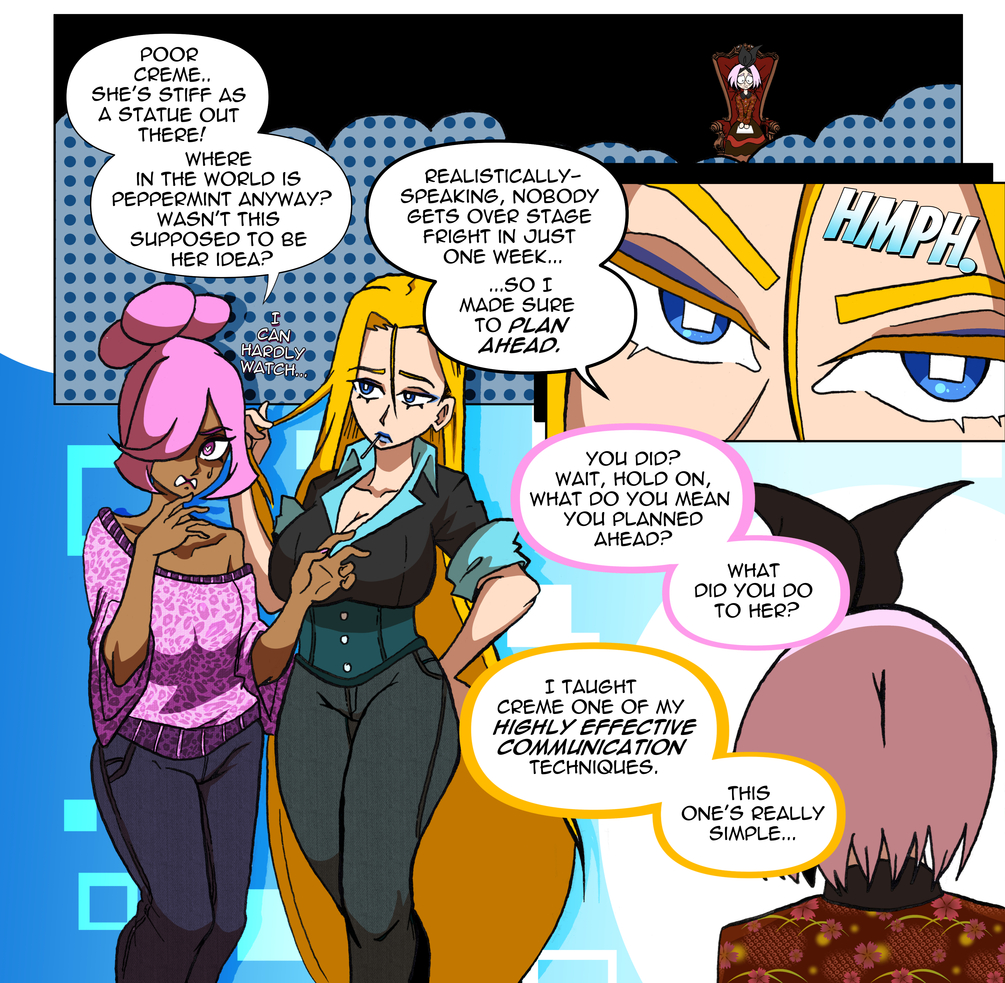 The time has come for Creme to step up and face down her stage fright. Thanks to the help and motivation of Peppermint and company, she's more confident than ever, but will it hold up under pressure? Meanwhile trouble ticks its way into the library as Peppermint experiences the explosive corruption taking root right under her nose!